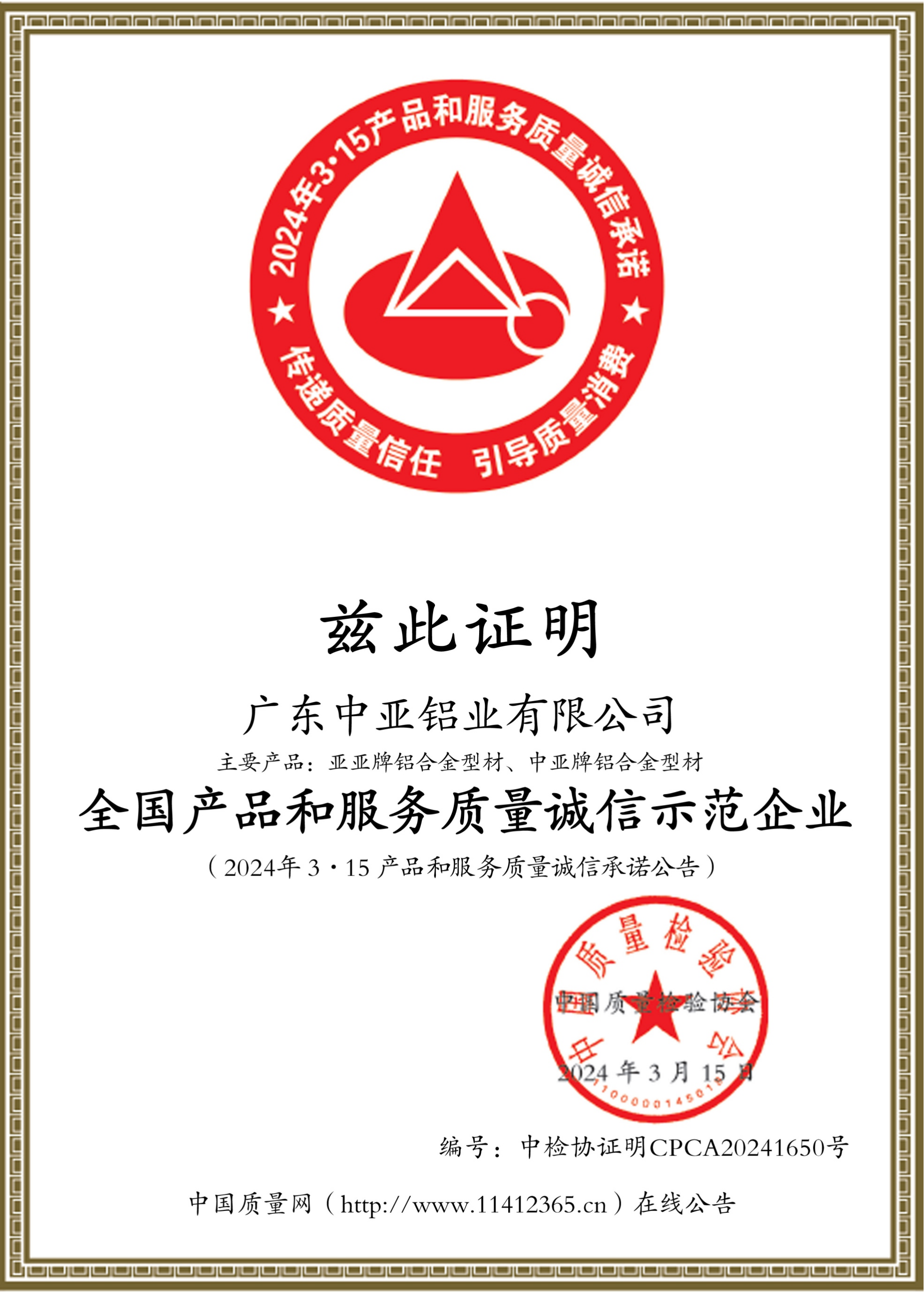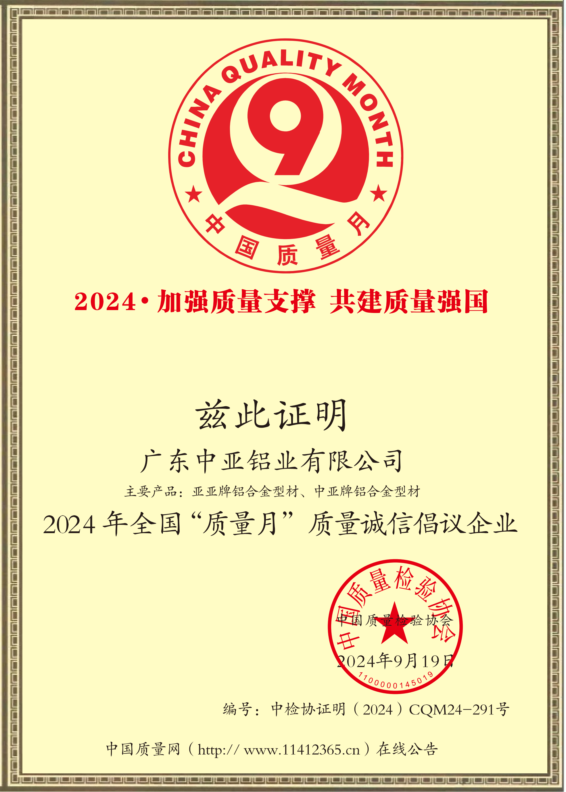 2024全国“质量月”质量诚信倡议企业