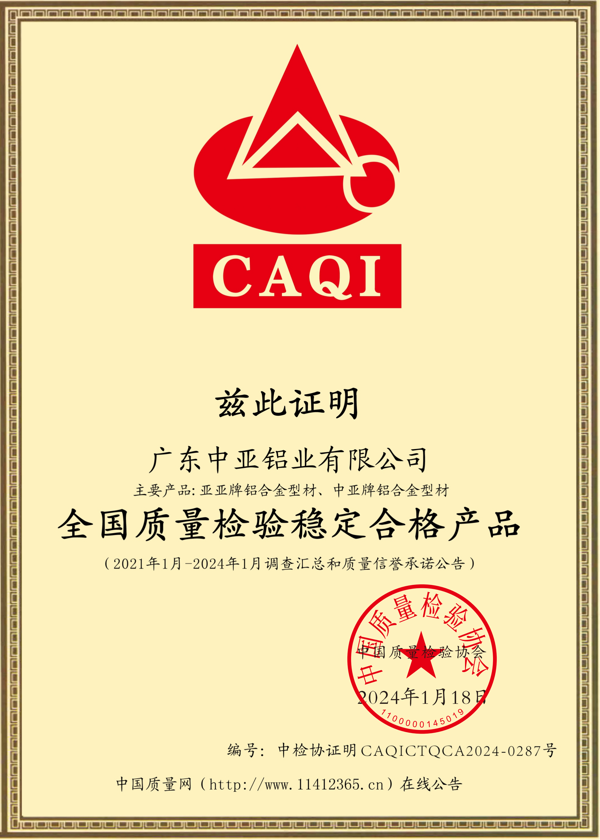 全国质量检验稳定合格产品