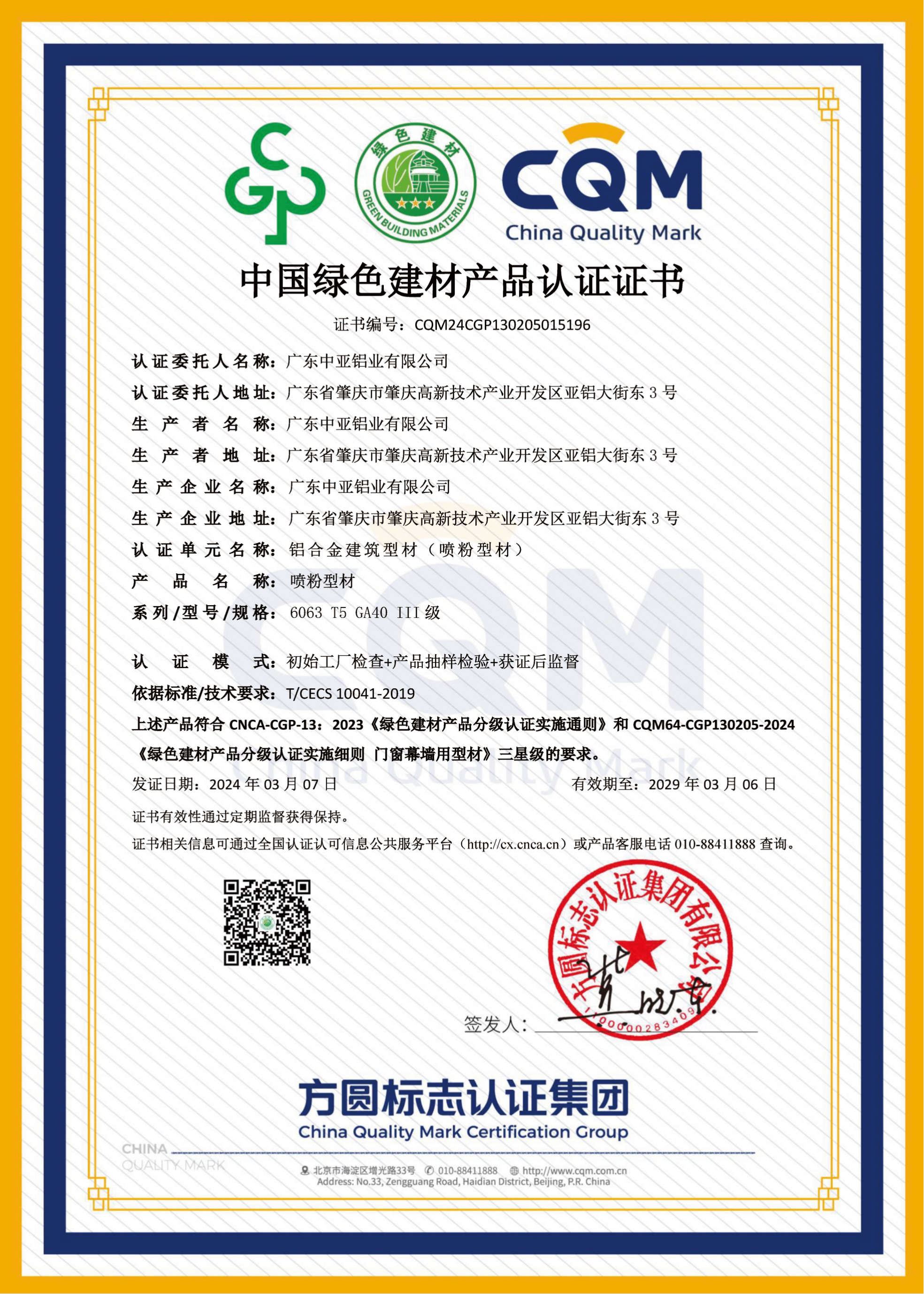 中国绿色建材产品认证证书2