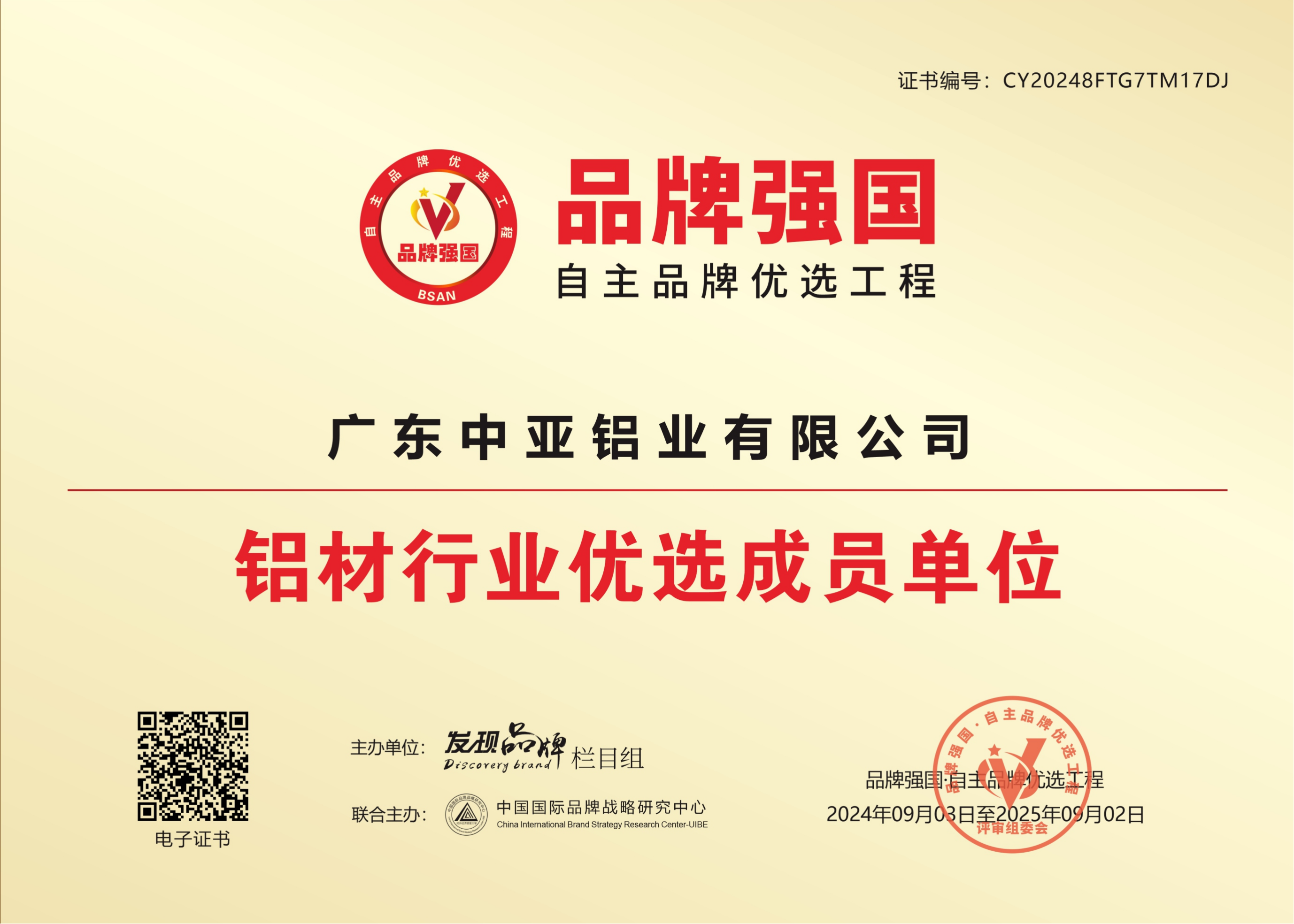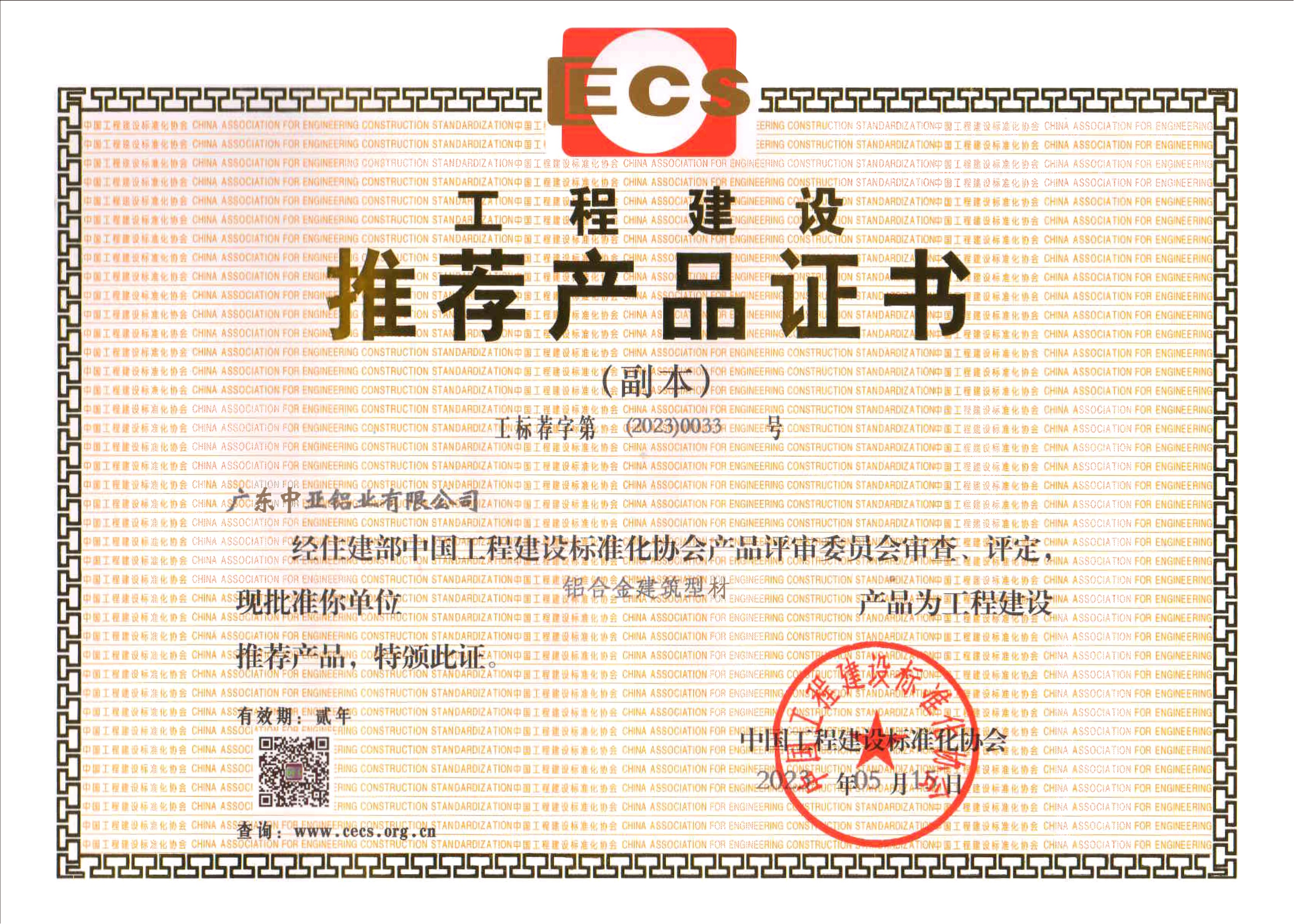 工程建设推荐产品证书-铝合金建筑型材