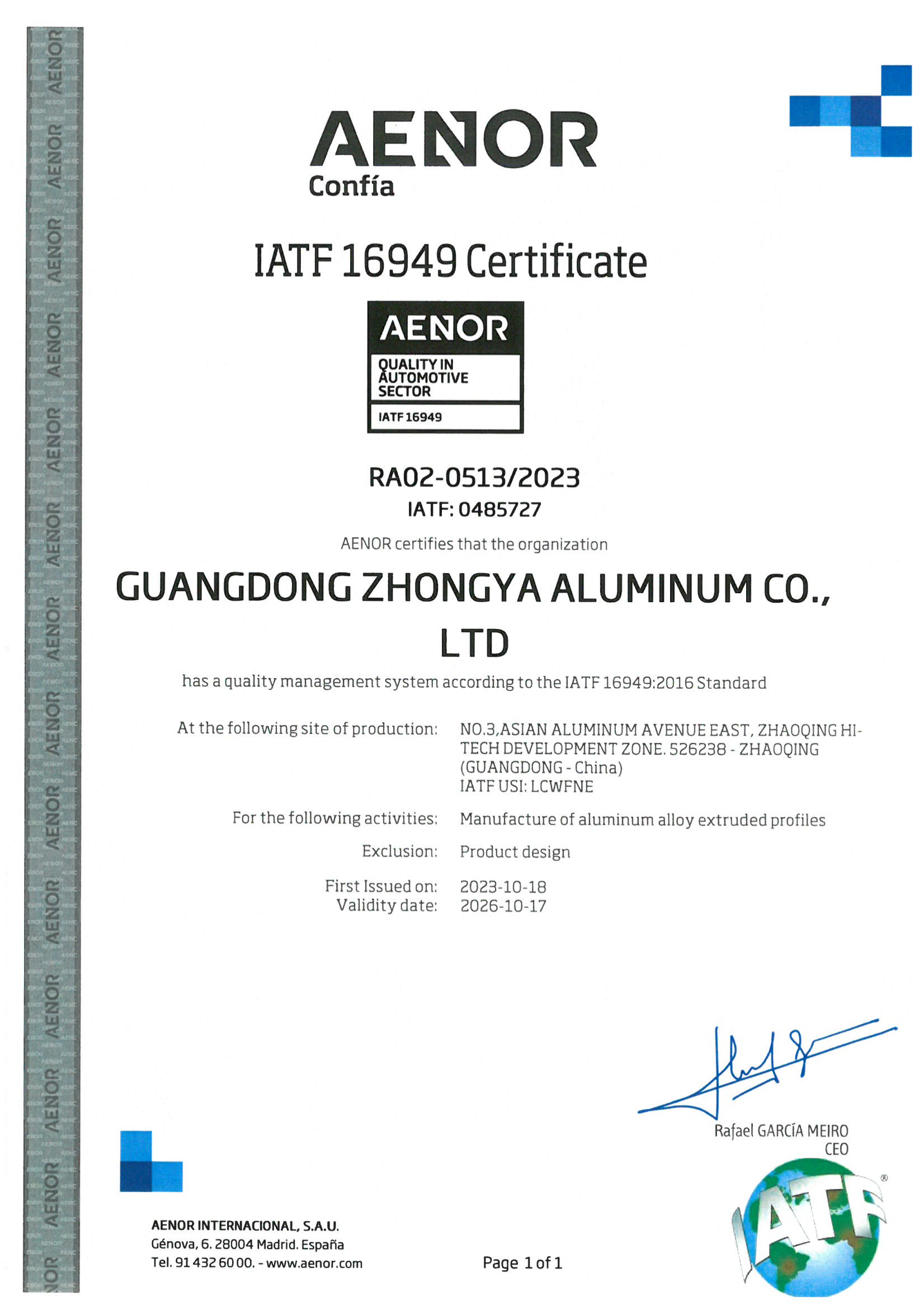 汽车行业质量管理体系认证证书
